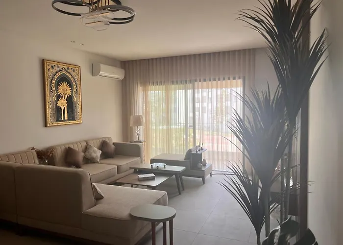 The 150 m² Blue Bay Appart Hotel Monastir is located just an 8-minute walk from Le Safari and 4.4 km from Night Club. While staying in this 2-bedroom apartment, guests can visit Golf Palm Links Monastir, which is around 500 metres away, and enjoy views of the garden or chill by a swimming pool.